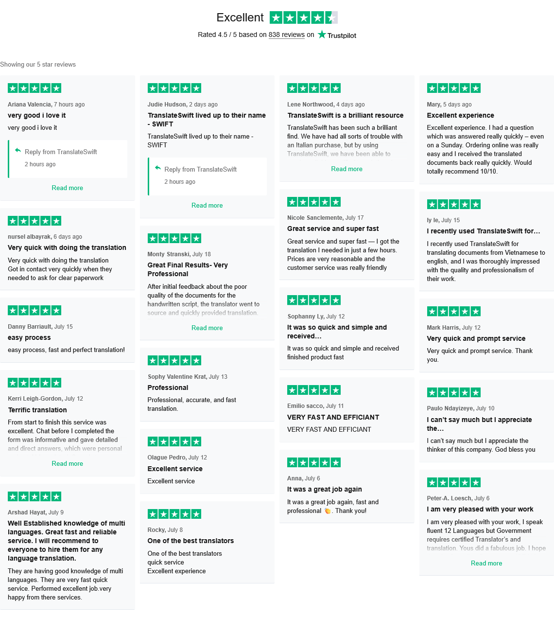 TranslateSwift provided me with excellent translation services for my marriage certificate from French to English. They were responsive, professional, and delivered an accurate translation.